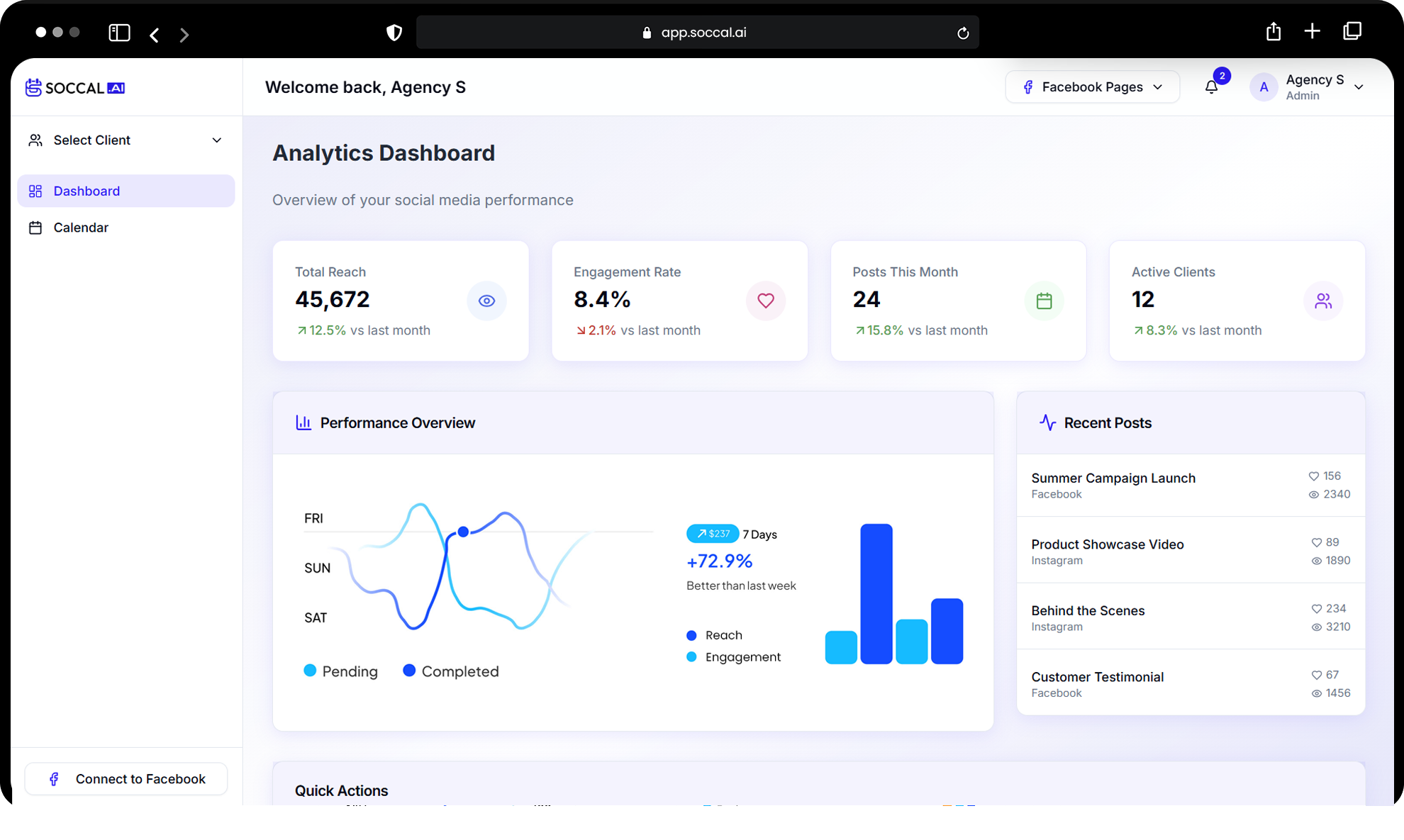 Soccal AI shows up as your AI social media expert, so you can stay focused on what matters most; growing your business."