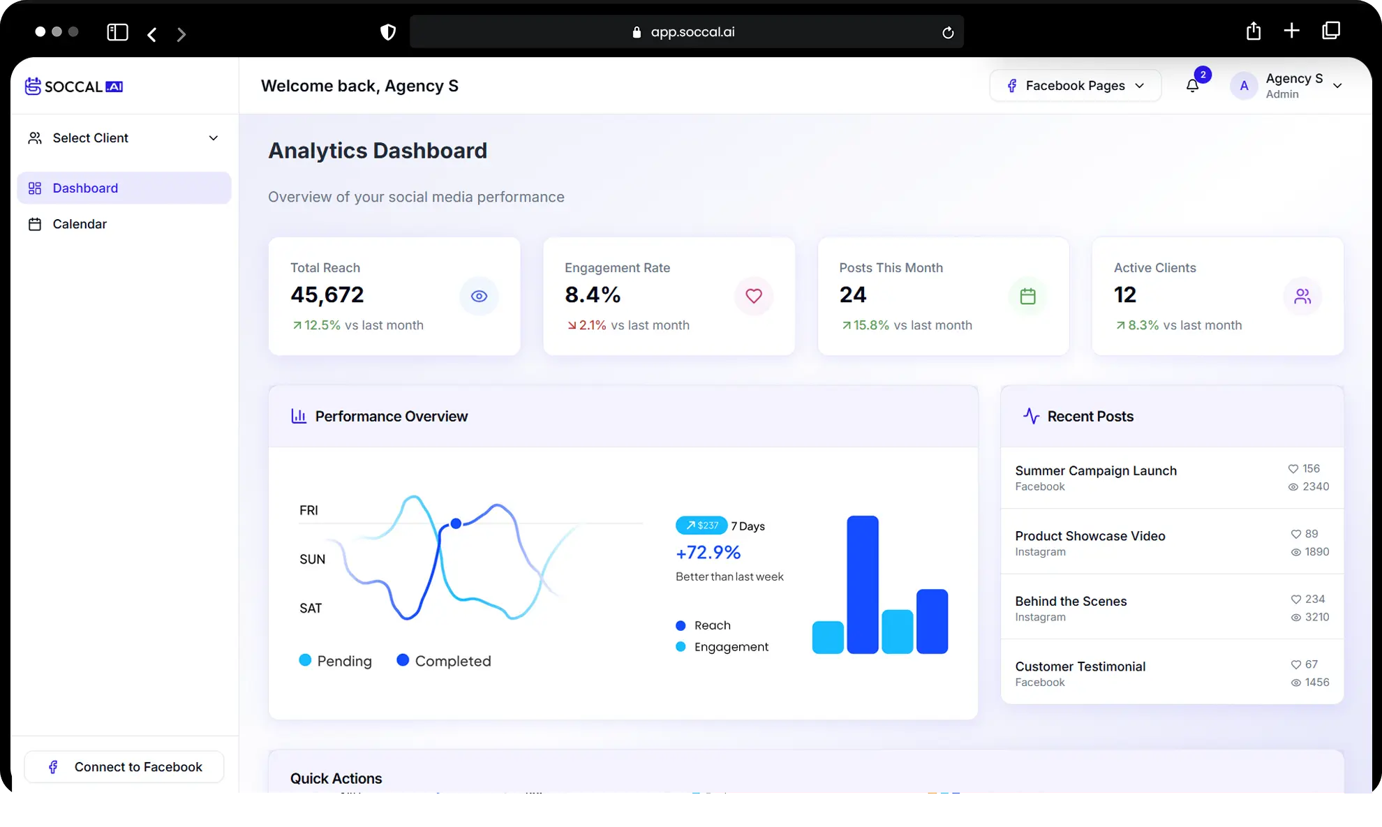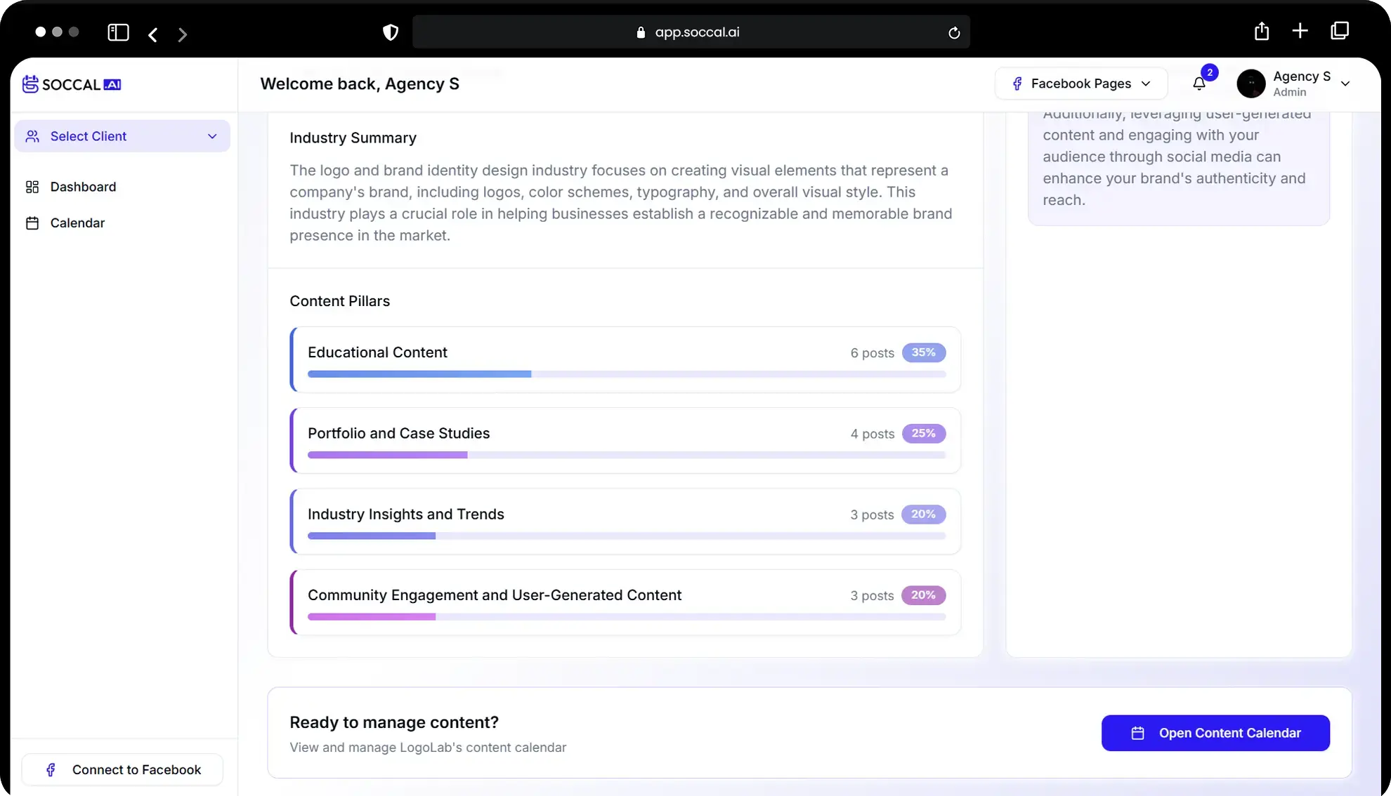 Soccal creates your content calendar, drafts your posts, and keeps you consistent so you can focus on growing your business.